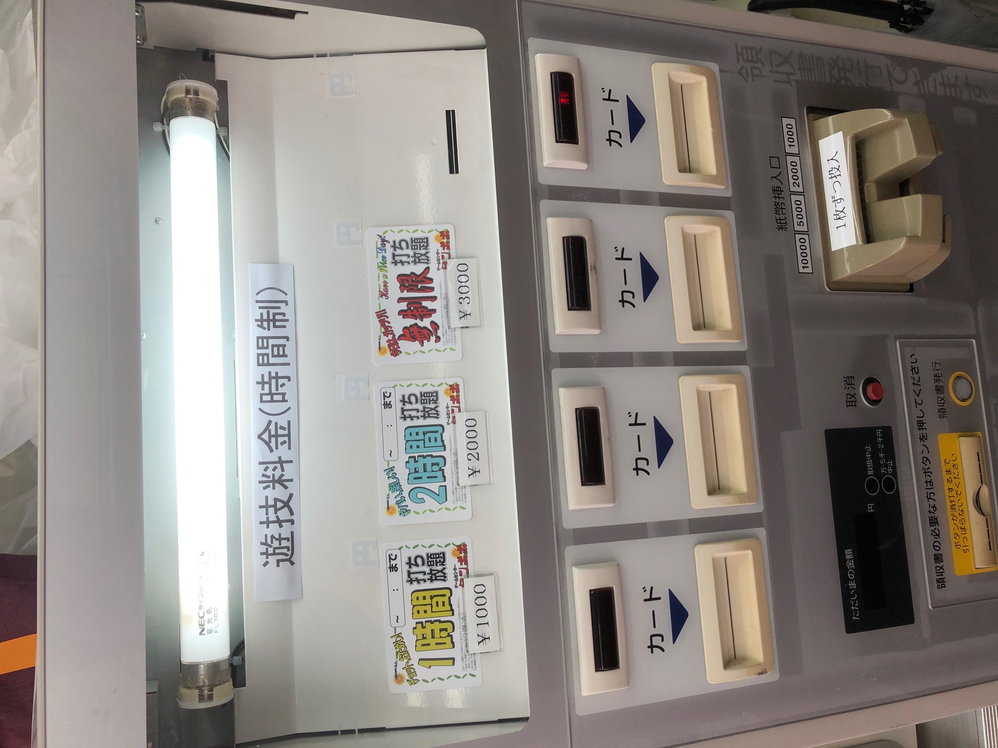システムは、打ち放題・台移動したい放題の時間制。パチンコからパチスロへの移動も大丈夫です。「昔はこれでパッキーカードを売っていたんだろうな」とKUNNYさん。パッキーカードとは、パチンコ版のプリペイドカードのこと。1990年代のパチンコは、パッキーカードを購入して打つスタイルだったのです。