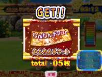 ボタンPUSHや画面タッチで子犬と遊び、ポイントメーターがMAXになれば「わんわんチケット」等を獲得。