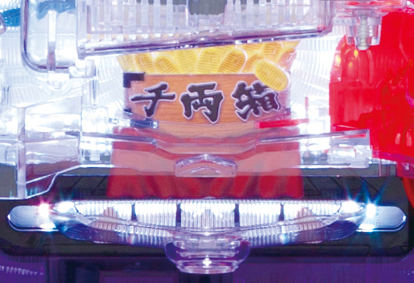「悪徳商人役物」がソロバンで玉を止めれば「お盆役物」へ突入。