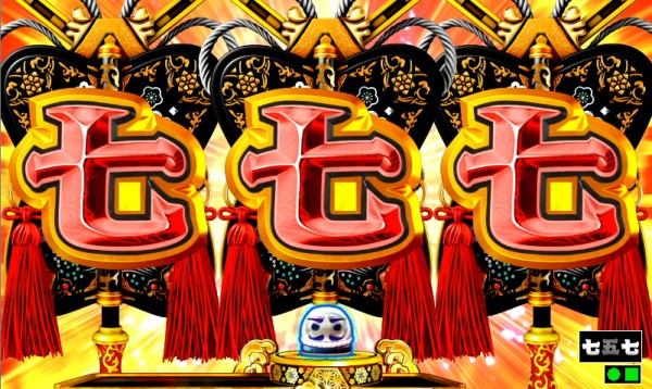 液晶内で図柄揃いor告知発生で大当り濃厚。⑦V入賞