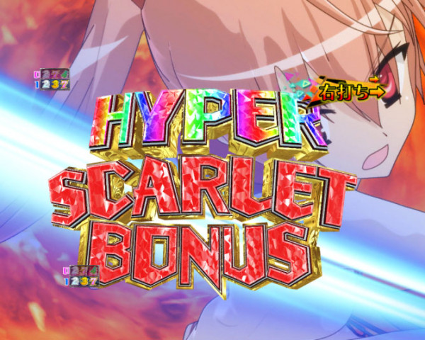 奇数図柄揃いで突入する4R大当りで、ラウンド終了後は電サポモードのHysteria Rushへ突入する。・SCARLET BONUS