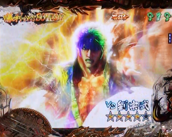 [7]図柄揃いで突入する10R確変大当りで、ラウンド終了後は電サポ付きST100回転の蒼拳RUSHへ突入する。・BONUS