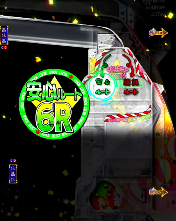 大当り時は、赤図柄揃いで突入するSELECT BONUSに注目で、2種類のルートから大当りが選択可能。