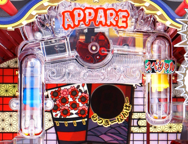 「スペシャルルート」へ突入した玉は、シーソー役物で「花道ルート」or「上段ルート」に振り分けられる。