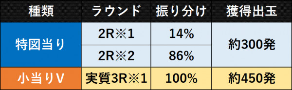 小当り出玉振分入賞口ラウンド数変化右打ち