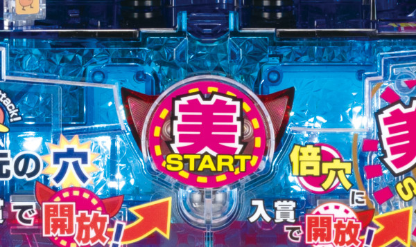 サイバードギミックにはじかれた玉が足元の穴に入賞すれば美STARTが開放され入賞をサポートしてくれる。