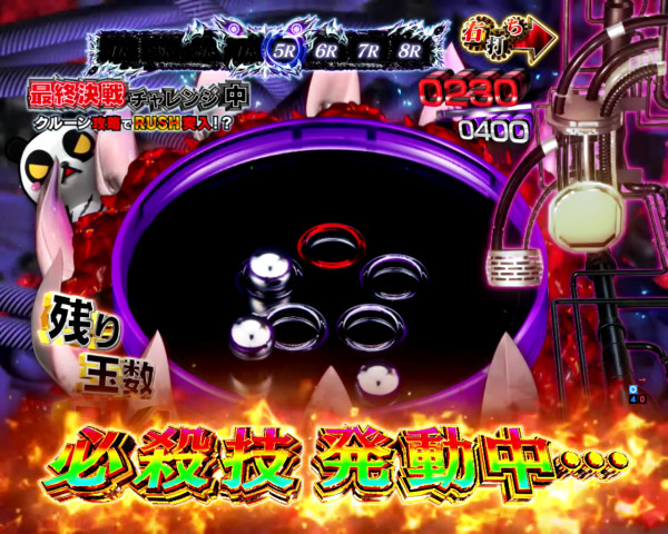 400発獲得可能な8R大当りで、ラウンド終了後は実質次回大当り濃厚のレインボーZONEへ突入する。・最終決戦BONUS