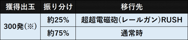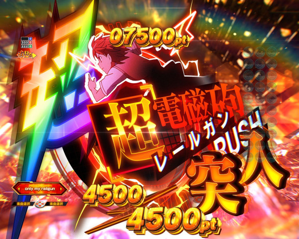 初回大当りは300発(※)獲得可能で、ラウンド終了後の突破チャレンジに成功すればST125回転の超超電磁砲(レールガン)RUSHへ突入。成功率は約25%。