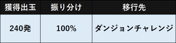 240発獲得可能な大当りで、ラウンド終了後はST42回転のダンジョンチャレンジへ突入する。
