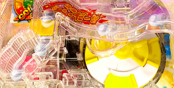 飛び込み口から入った玉は2つのルートに振り分けられ回転体を目指す。・近道ルート