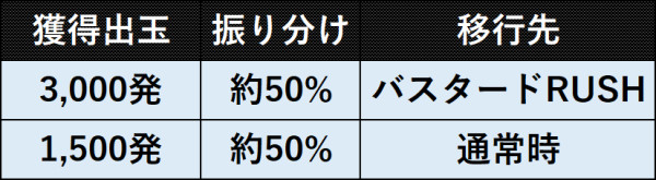 主に[7]図柄揃いから突入する3,000発獲得可能な大当りで、終了後はST10回転+残保留4個のバスタードRUSHへ突入する。