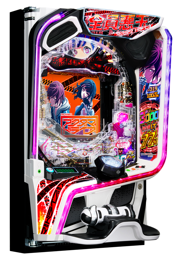 本機は、「大当り確率 約1/319.6」「ST突入率100%」の挑みやすさながら「継続率 約77%」「大当り出玉が全て3,000発」のラッキートリガー「アクダマドライブ」を搭載した超S級LTスペックが特徴となっている。