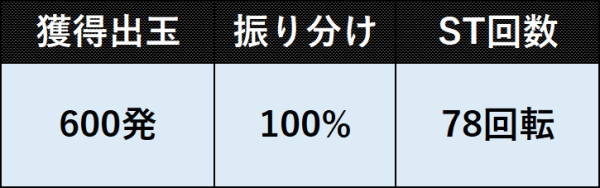 600発獲得可能な4R大当りで、ラウンド終了後はST78回転のドラマチックSTに突入する。