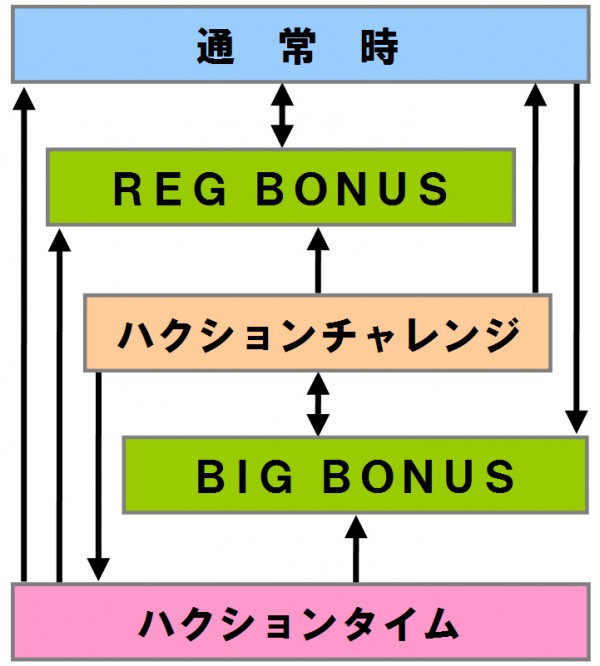 基本的にボーナスでコインを増やすノーマルタイプだが、BIG BONUS終了後はチャンスゾーン「ハクションチャレンジ」を経由してRT「ハクションタイム」突入が期待できる。