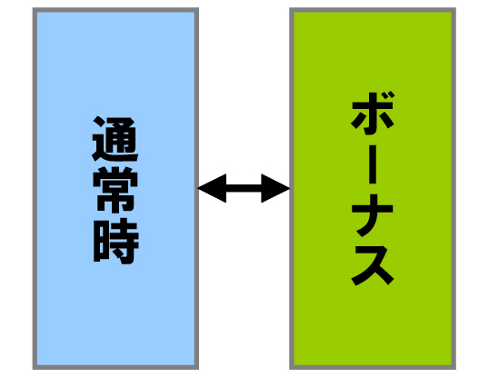 ボーナスは、BIG BONUS(最大252枚)とREG BONUS(最大96枚)の2種類で、共にピンク7図柄or青7図柄どちらでも揃えることができる。