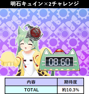 ※リーチハズレ後に発生する「明石キュイン×2チャレンジ」のみ対象(明石ギフトから発生分は含まない)