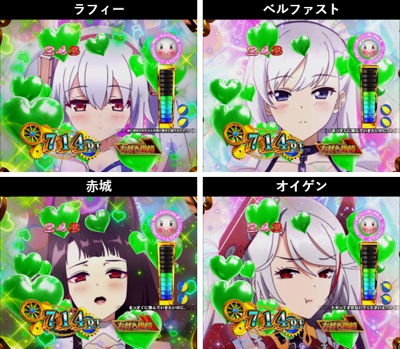 「ラフィー」「ベルファスト」「赤城」「オイゲン」との対戦で、メーターが緑まで到達すれば大当り!?