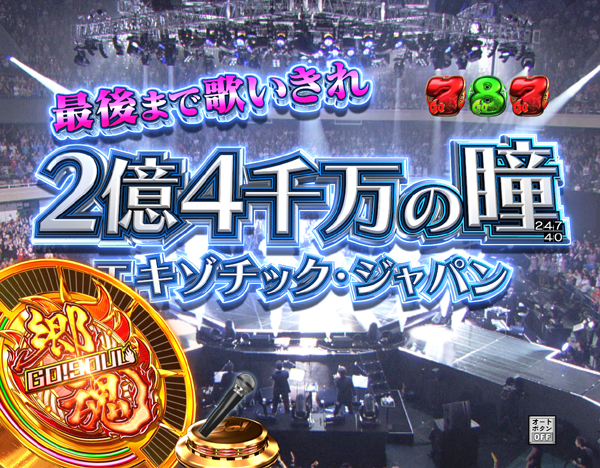 演出 内容 期待度 TOTAL 38.4% タイトル 赤 89.35% 金 大当り濃厚 歌詞色 赤 90.00% 金 大当り濃厚 導光板 なし 53.73% 白 88.45% 赤 90.00% ボタン 通常 61.76% 赤 90.00% 天激ボタン 大当り濃厚
