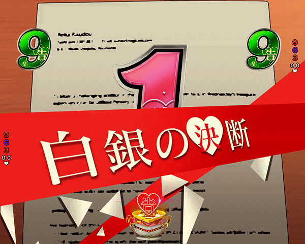 内容 期待度 TOTAL 51.0% ゆっくり点灯 50.7% 高速点滅から最終煽り 大当り濃厚 漏れてくる光がレインボー 大当り濃厚 楽曲スタート「ハピハピ♡dreaming brain」 大当り濃厚 藤原書記がかぐやに変化 大当り濃厚 藤原書記が変顔 大当り濃厚 藤原書記役物がゆっくり点灯 大当り濃厚 ぺス(犬)が出現 大当り濃厚 藤原書記が右に動く 大当り濃厚 告ハート役物が低速回転 大当り濃厚