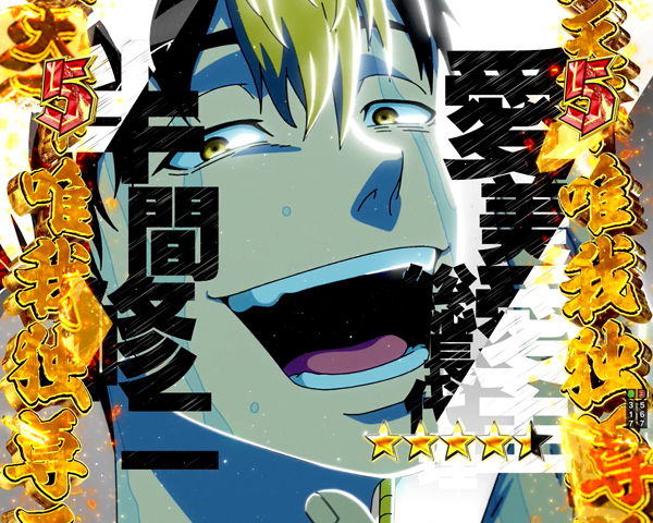 黒い衝動SP 演出 内容 期待度 TOTAL 約50.5% テンパイ図柄 黒1図柄 約38.0% 黒3図柄 約83.6% 黒5図柄 約41.1% 黒7図柄 大当り+芭流覇羅(バルハラ)決戦突入濃厚 -