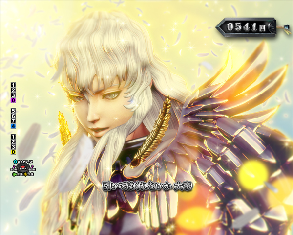 運命を選択せよボタン パターン 期待度 移行ルート 煽り成功⇒狂戦士ボタン 約52% ガッツルートへ 煽り成功⇒光の鷹ボタン 約73% グリフィスルートへ 狂戦士煽り経由 狂戦士ボタン 約82% ガッツルートへ 光の鷹煽り経由 光の鷹ボタン 約96% グリフィスルートへ