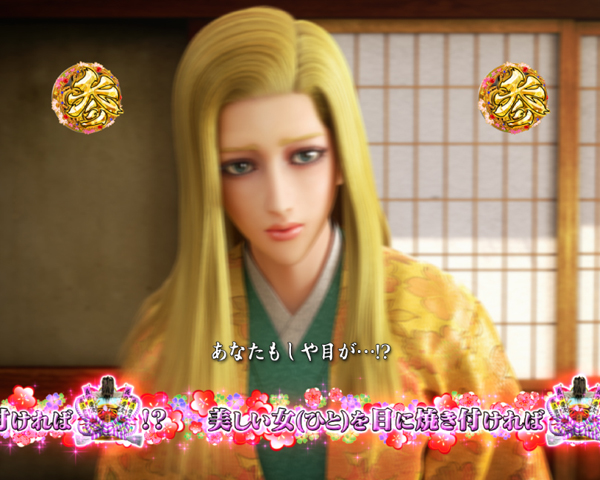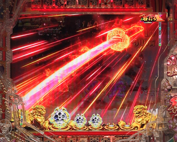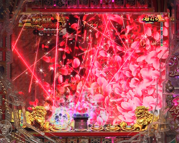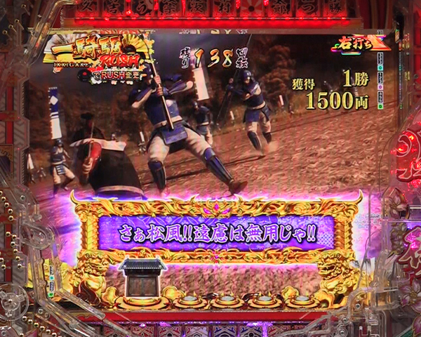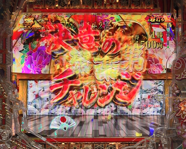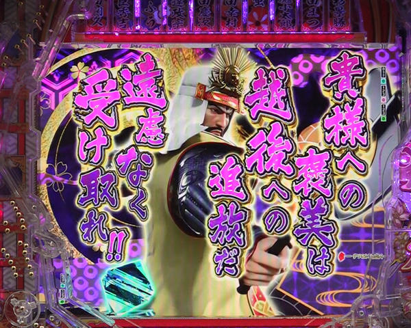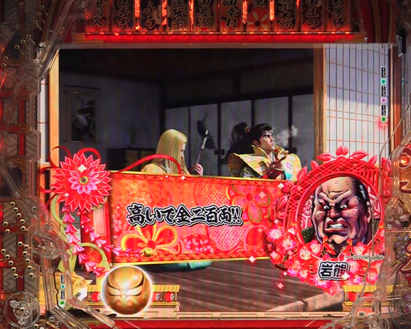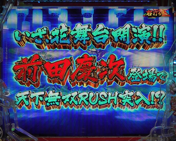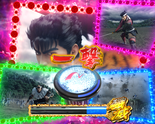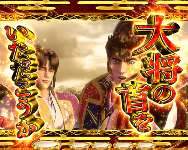 演出 内容 期待度 ルート 通常 55.57% ボタン一撃 大当り濃厚 疾風迅雷 大当り濃厚 黄金舞台 大当り濃厚 城門突破失敗⇒扉連打演出 80.69% 押し合い演出 捨丸(白) 56.35% 岩兵衛(白) 57.28% 捨丸&岩兵衛(白) 63.86% 直江兼続(赤) 91.55% 前田慶次(赤) 大当り濃厚 城門到達時_城門テキスト デフォルト 60.31% 赤 大当り濃厚 金(城門突破) 大当り濃厚 城門ゲージ演出 中速 51.07% 低速 87.74% 高速 95.01% 全点灯停止 大当り濃厚