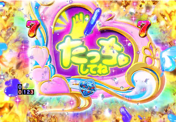 図柄テンパイ時に発生する予告。「ちゃんす」出現やボイスがカナちゃん&ハナちゃんなら期待度アップ。パターン 期待度 アマ プロ 中 12.5% 大当り濃厚!? 強 42.8% 大当り濃厚!? 強プラス 79.9% 大当り濃厚!?