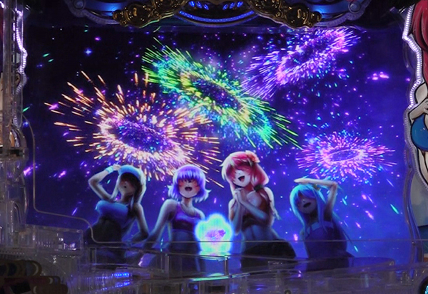 流れ星が流れ、打ち上げ花火のカットに変化する予告。流れ星の数や種類の他、打ち上げ花火を眺める女の子の人数にも注目。打ち上げ花火予告