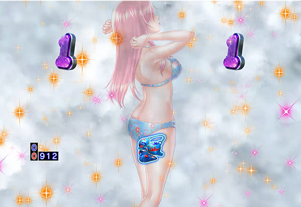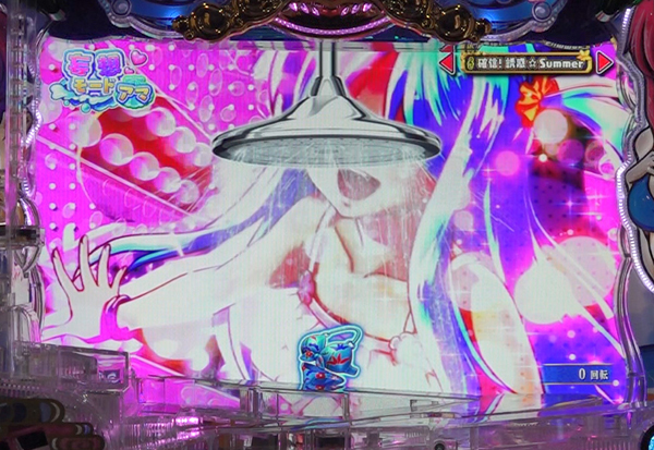 液晶上部にシャワーノズルが現れる予告。湯気が画面全体を包むとシャワーリーチへと発展。シャワーノズルの数が多いほどチャンス。シャワー予告