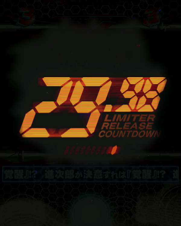 演出 内容 突入期待度 文字色 デフォルト 30.0% 金 リミッター解除RUSH濃厚 デバイス色 デフォルト 25.0% 赤 リミッター解除RUSH濃厚 当落ボタン 文字色:デフォルト/デバイス:デフォルト 25.2% 文字色:デフォルト/デバイス:赤 リミッター解除RUSH濃厚 文字色:金/デバイス:赤 リミッター解除RUSH濃厚