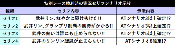 ボーナス中のストック抽選やAT「GK DREAM」中・特別レース中のATシナリオ示唆などが判明した。
