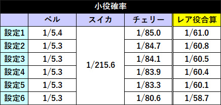 小役によるボーナス期待度はベルとチェリーに設定差がある。チェリーよりベルの方が設定差が大きい。