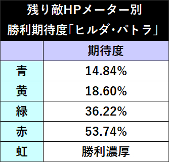 規定ゲーム数消化後、敵の残りHPメーターで勝利を抽選するが、途中で敵HPを[0](虹)にできれば即勝利となる。