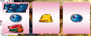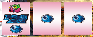スイカが上段までスベり、スイカもチャンス目も成立しなければリーチ目F(払出0or1枚)。
