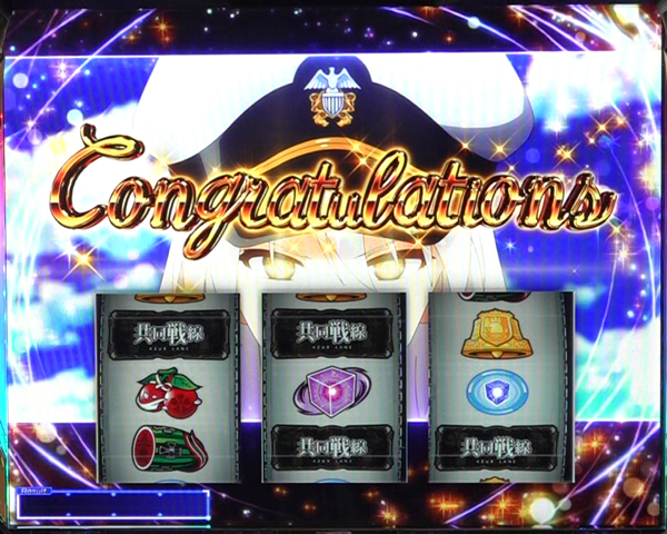 通常時最大350ゲーム+α消化で「アズールレーンBONUS-海戦-」に当選。<設定変更時>