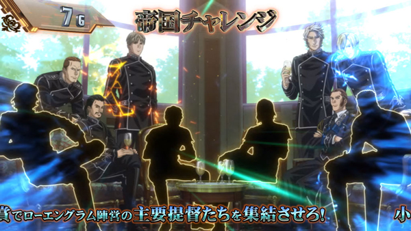 10G間で小役入賞できれば銀河帝国の主要提督が集結しランクアップ。最終ゲームで現在の集結してる提督の人数を参照してボーナスを抽選する。帝国チャレンジ