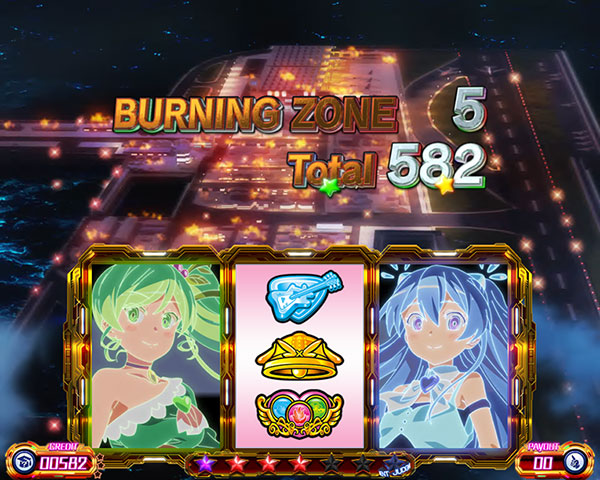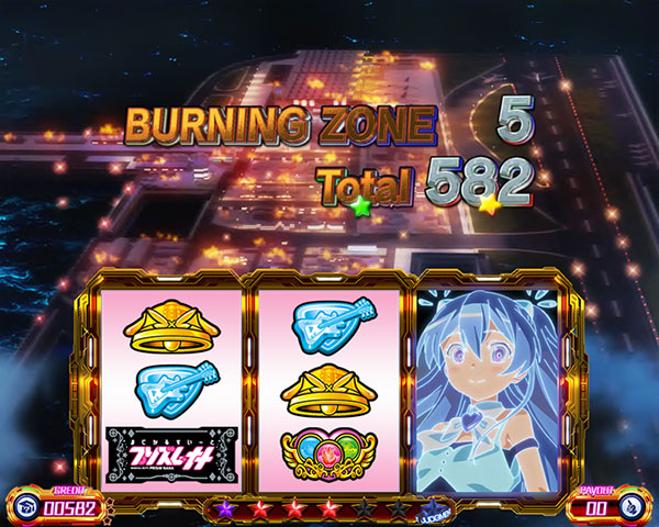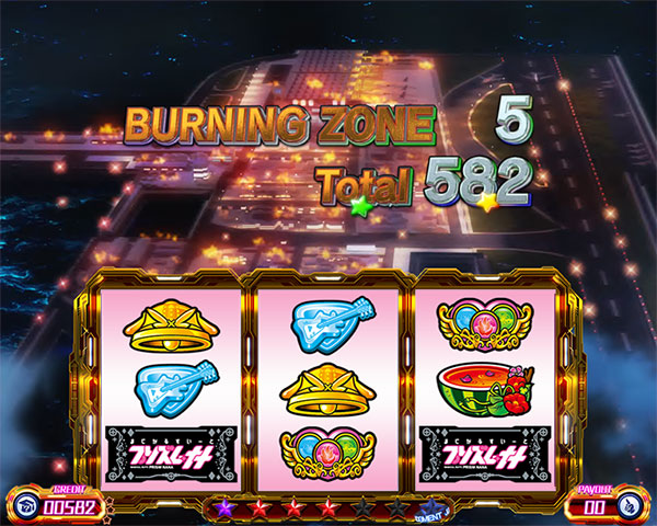 天井周期到達or規定ゲーム数消化でST「BURNING ZONE」当選。