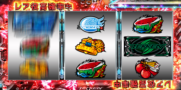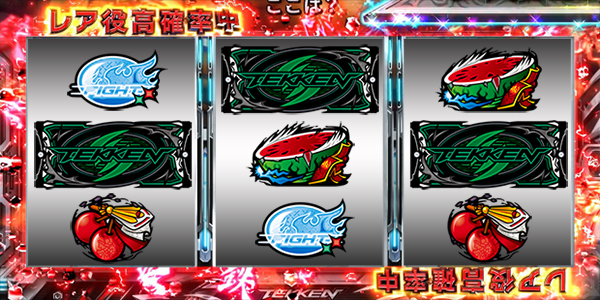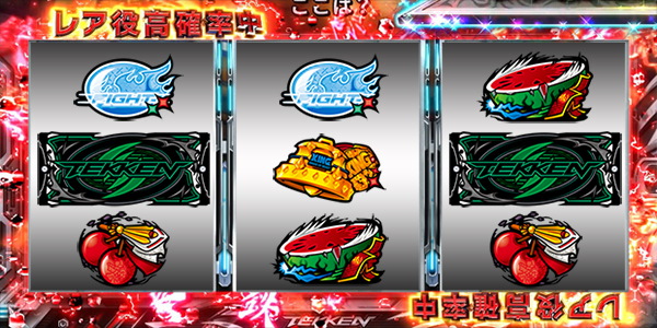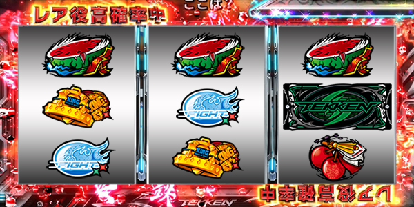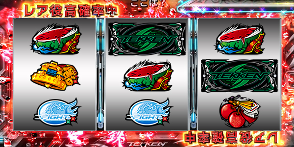主に「7揃い」「レア役」で鉄拳ラッシュを抽選するが、それ以外でも鉄拳ラッシュを抽選しており、トータル期待度は約37%。