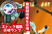 センターにある円の部分の色によって継続期待度を示唆し、右側の青いランプによってストック数を示唆する。