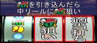 左リールに角チェリーが停止した場合は中リールは適当打ちし、右リールに3種類あるボーナス図柄のいずれかを狙う。