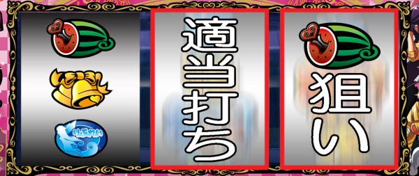 スイカが停止した場合は、中リールを適当打ちし、右リールにスイカ図柄を狙う。
