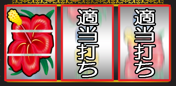 ミニビスカスランプが黄色に点灯したら、ドット表示に合わせて左リールに図柄を狙い、中・右リールを適当打ち。