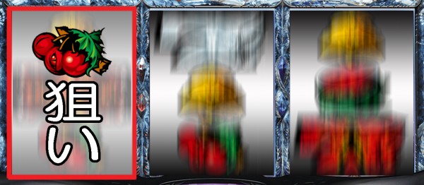 角チェリーが停止した場合は、中リールを適当打ちし、右リールにボーナス図柄を狙う。