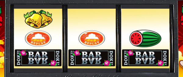 スイカが停止した場合は、中リールにスイカ図柄を狙い、右リールを適当打ち。