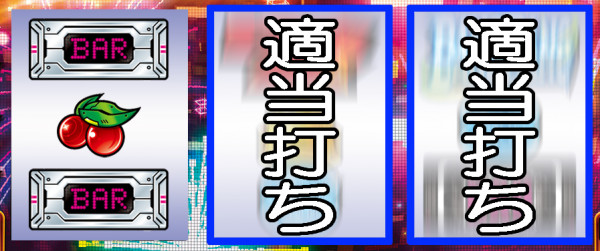 ハズレorチェリーに対応。左リールに白BAR図柄を狙い、中・右リールは適当打ち。