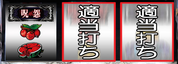 スイカが停止した場合は、中リールを適当打ちし、右リールにスイカ図柄を狙う。