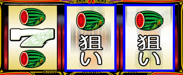 スイカが停止した場合は、中・右リールにスイカ図柄を狙う。