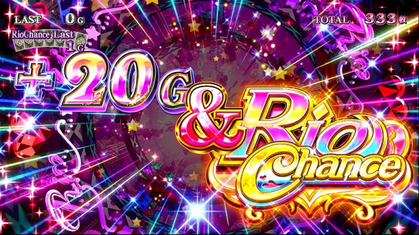 1ラウンド3G・1ゲーム約1.5枚純増のATで、リオタイム中に獲得したストックを使ったゲーム数上乗せ特化ゾーン。平均上乗せは60G。