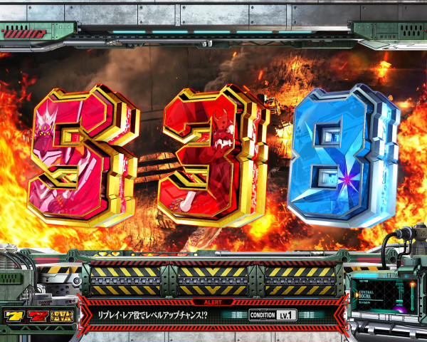 赤7揃い後は暴走フリーズが発生し、初期ゲーム数を決定する。AT初当り時の約15%は赤7揃いとなる。