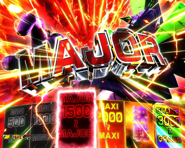 1セット100ゲーム+上乗せ特化ゾーン「E-BURST」の初期保証ストックを1~5個獲得。AT初当り時の約85%が「PREMIUM EVA GAME」となり、期待出玉は約1,250枚。